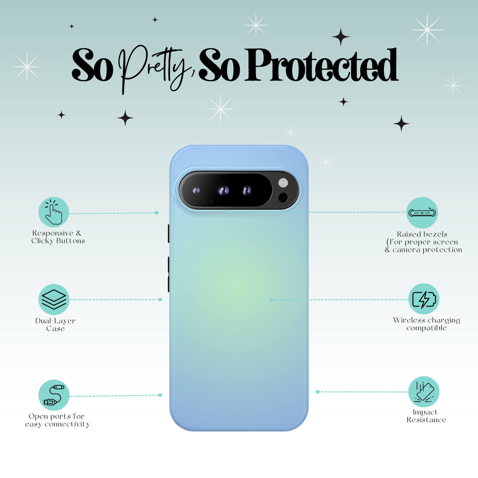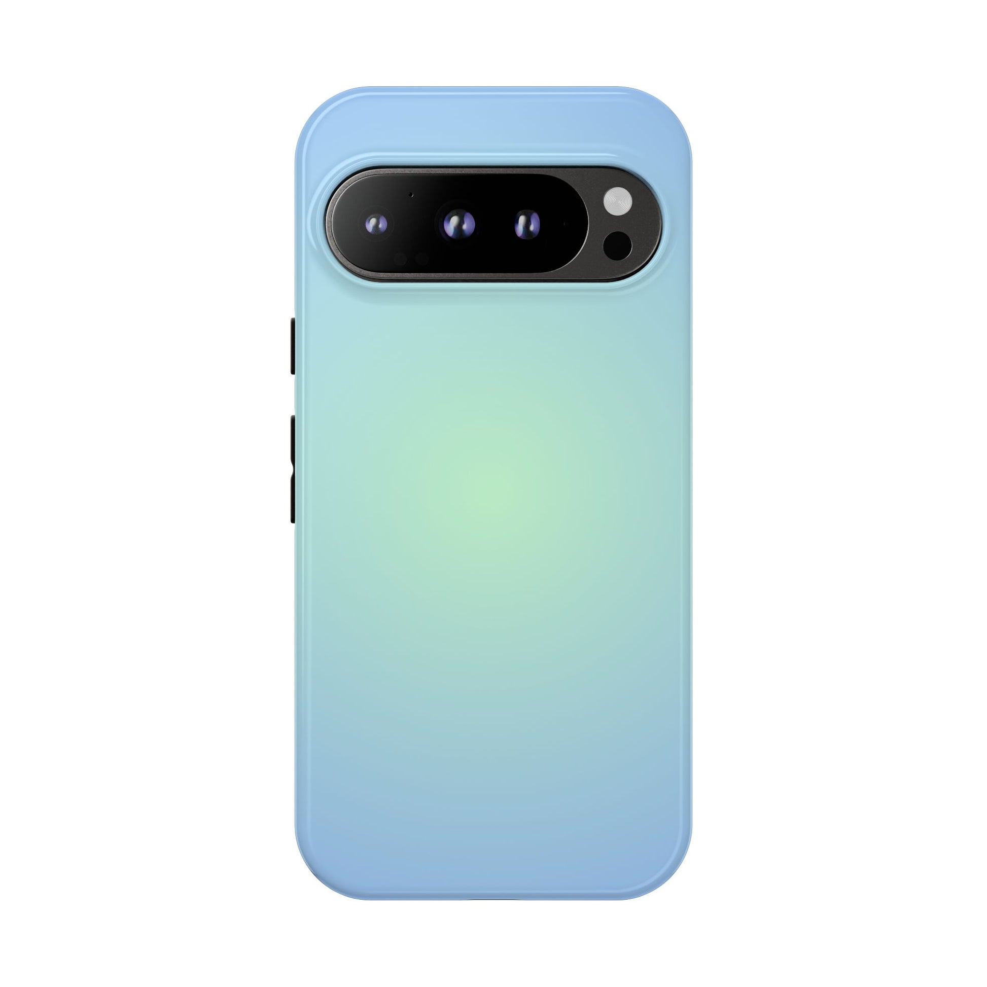 A soft, radiant gradient from tranquil blue to a luminous mint green center. This calming design offers a refreshing look and durable protection.