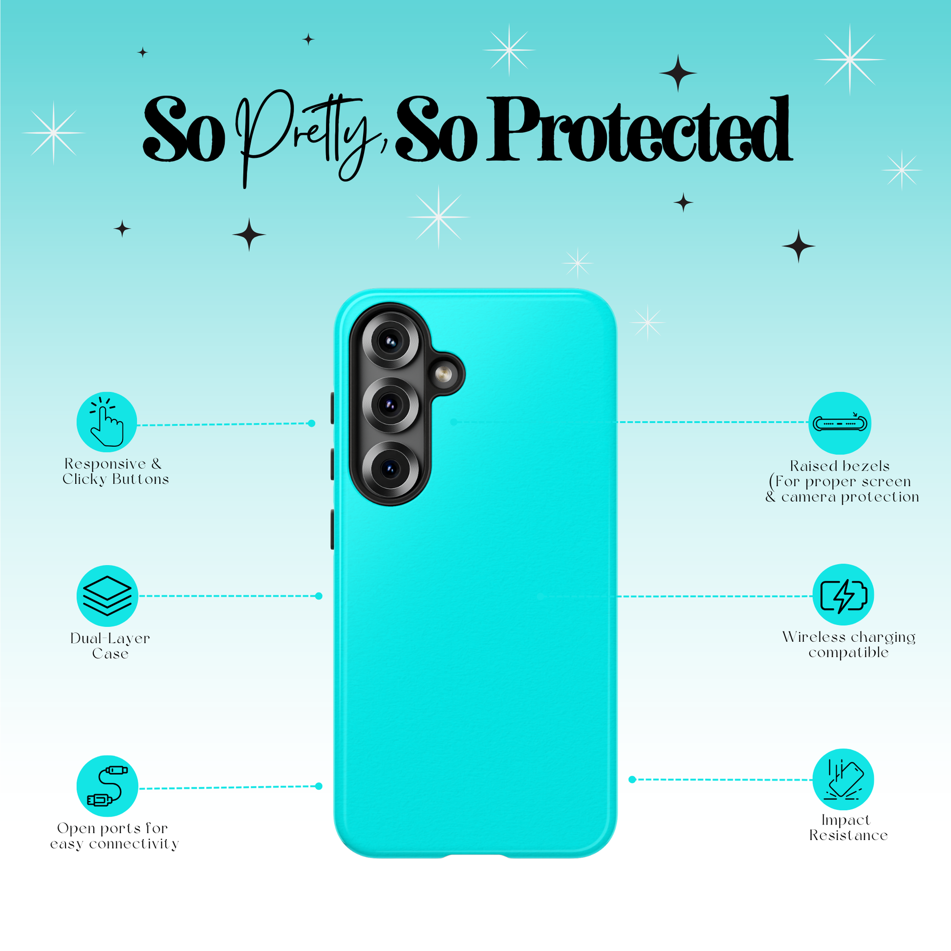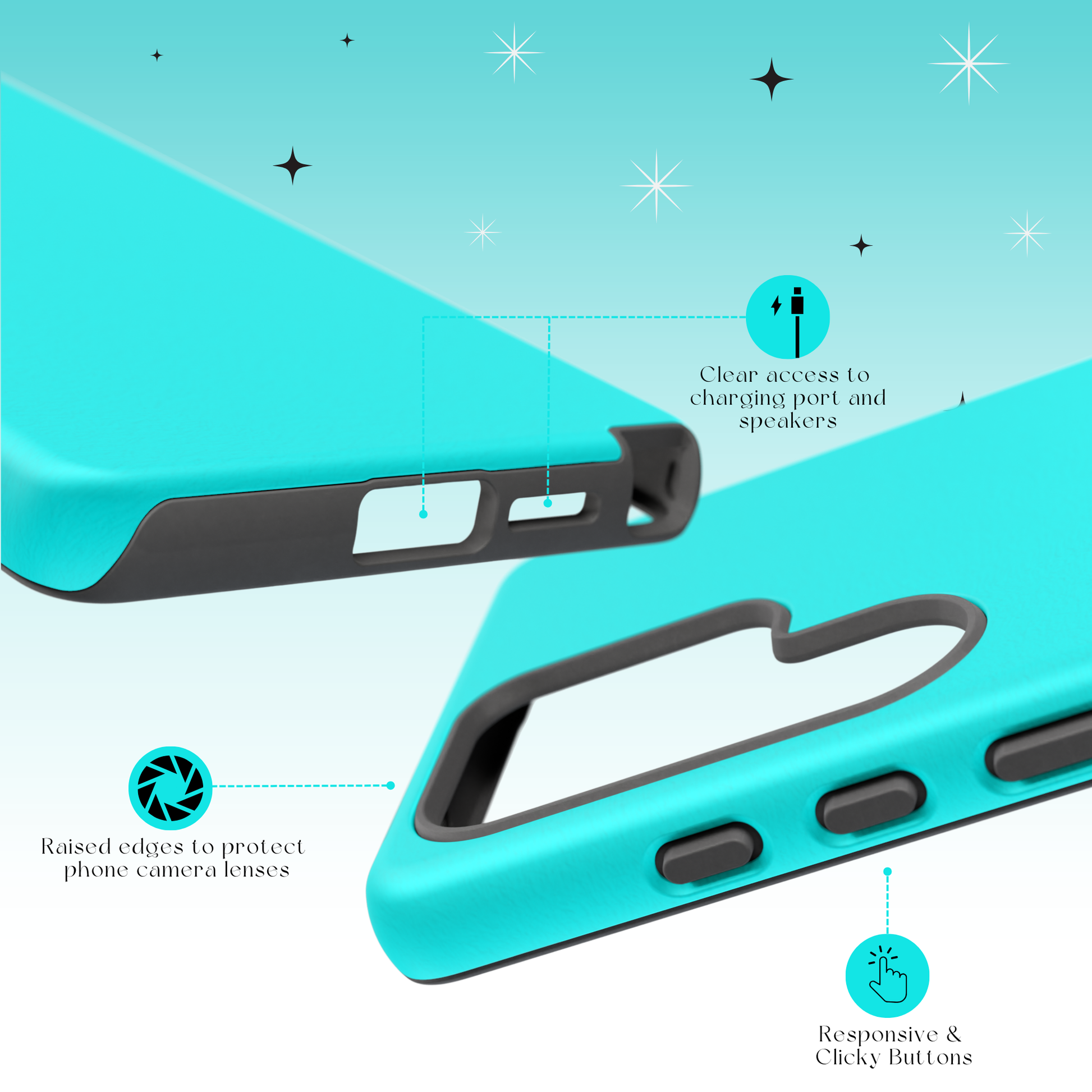 • Our cases are drop tested, double-layered, feature raised screen/camera edges, and offer 360° protection with impact resistance and shock dispersion technology.