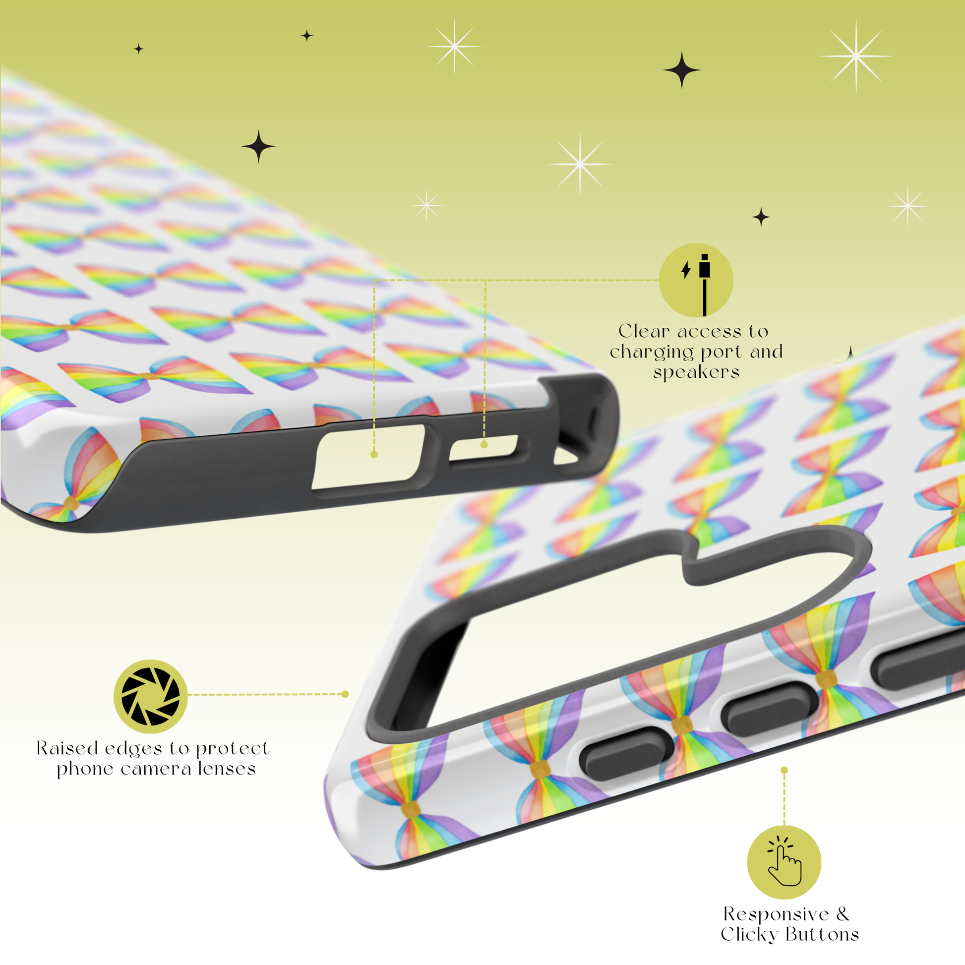 • Our clear cases are drop tested, feature raised screen/camera edges, and offer 360° protection with its 4-corner air cushions.