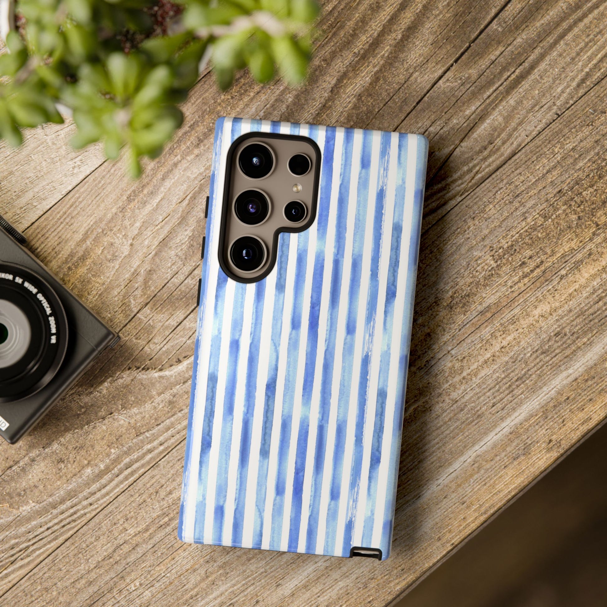The feeling of a gentle wind on a lazy summer afternoon. The lines of various blues capture the serene rhythm of waves on the shore and the quiet hum of a day spent in peaceful contemplation.