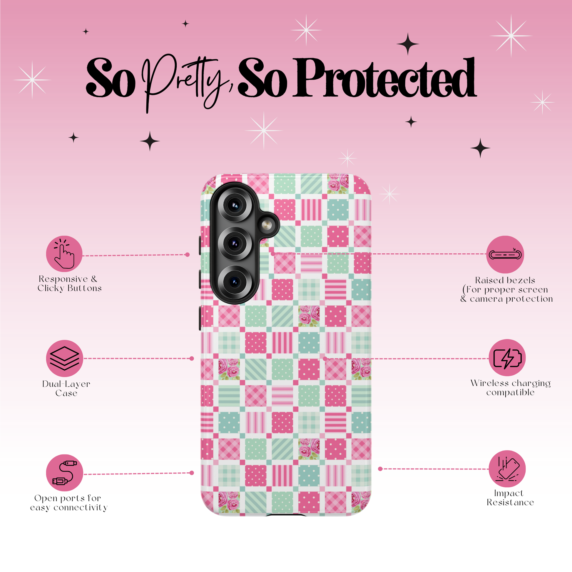 Note: Even though our cases are highly protective and offer 360° protection, we cannot promise that they will protect your phone against all situations. We recommend using a screen protector + our cases for ultimate protection. ♥