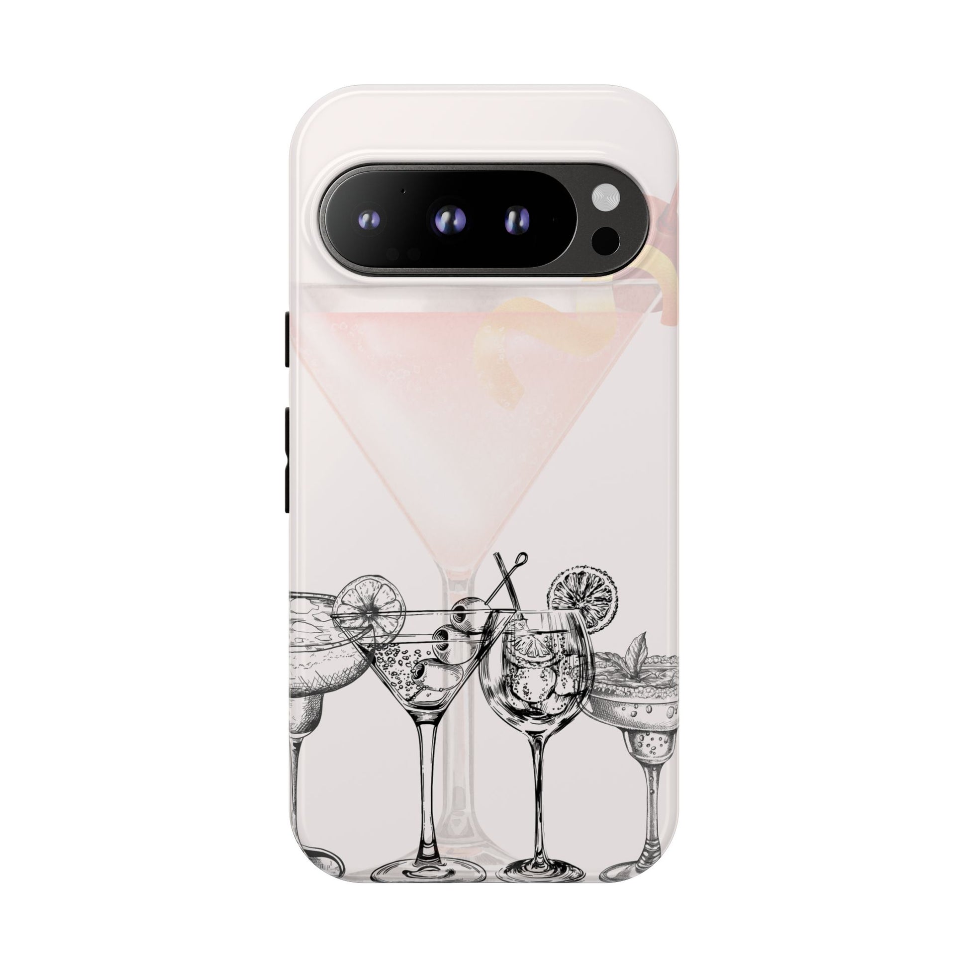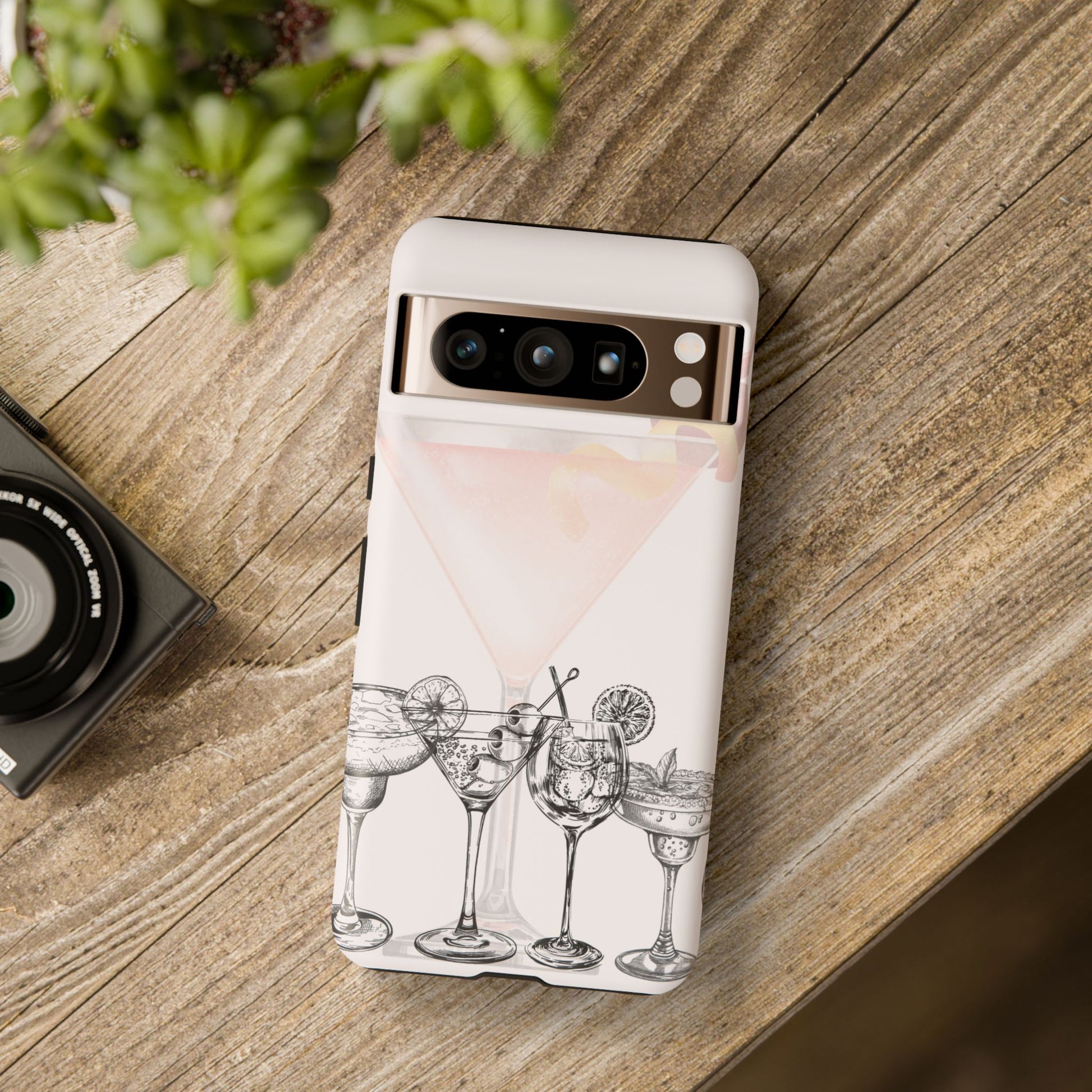 It's always cocktail hour somewhere! This sophisticated phone case showcases a variety of classic cocktail glasses, with a hint of a vibrant pink drink in the background. It's a stylish and elegant choice for cocktail enthusiasts and those who appreciate timeless design.