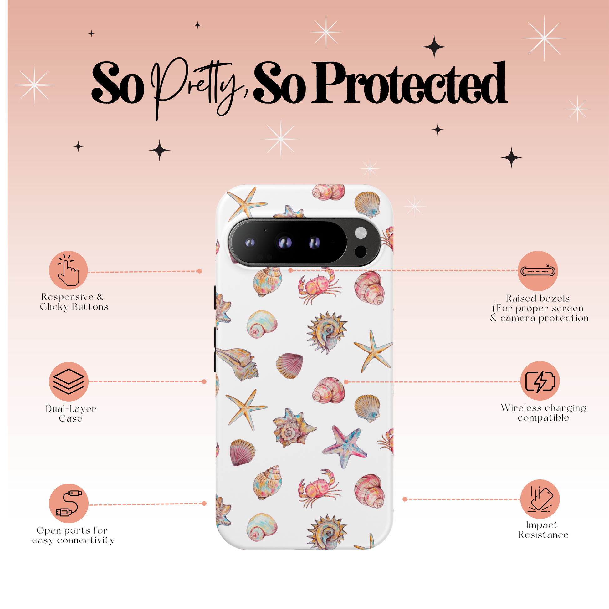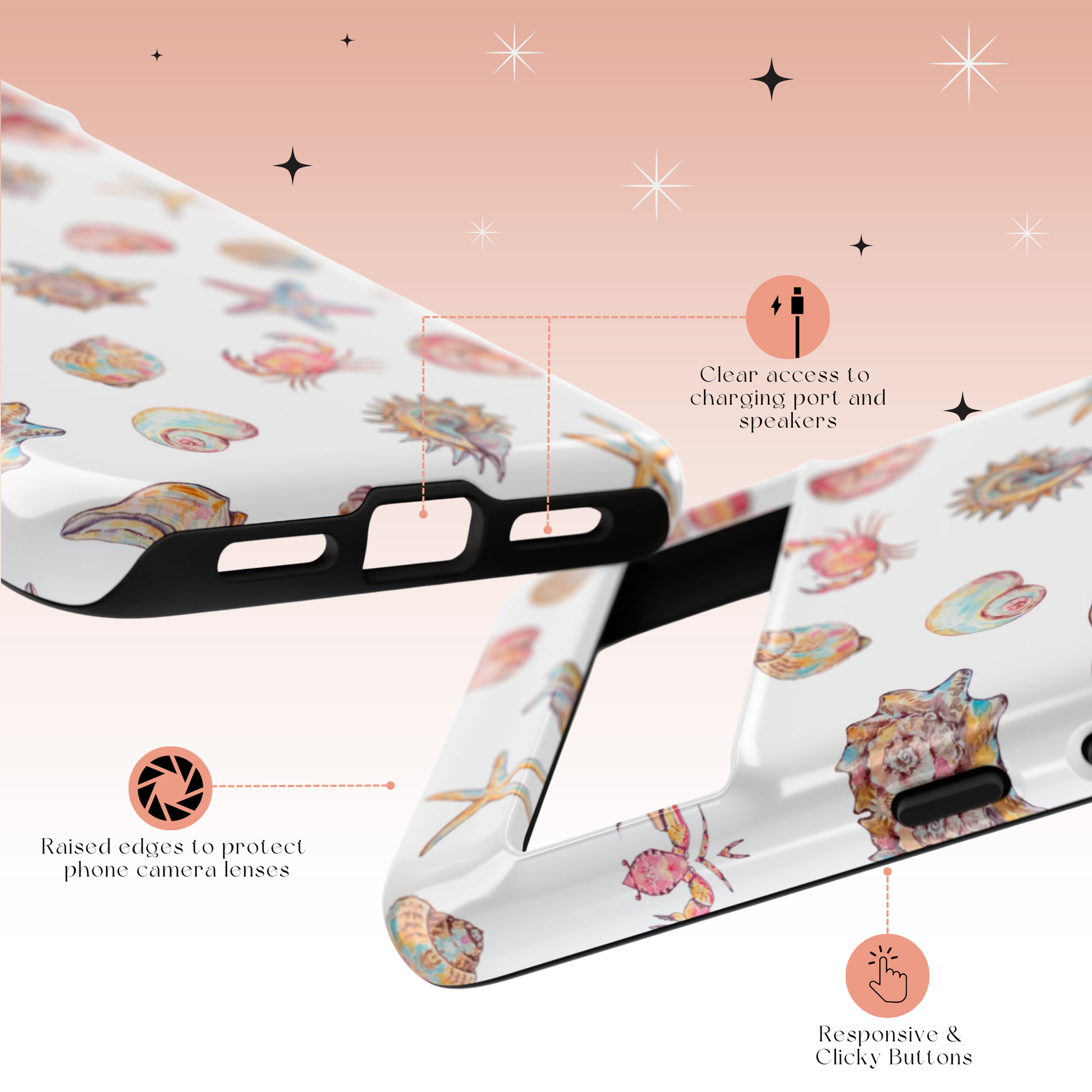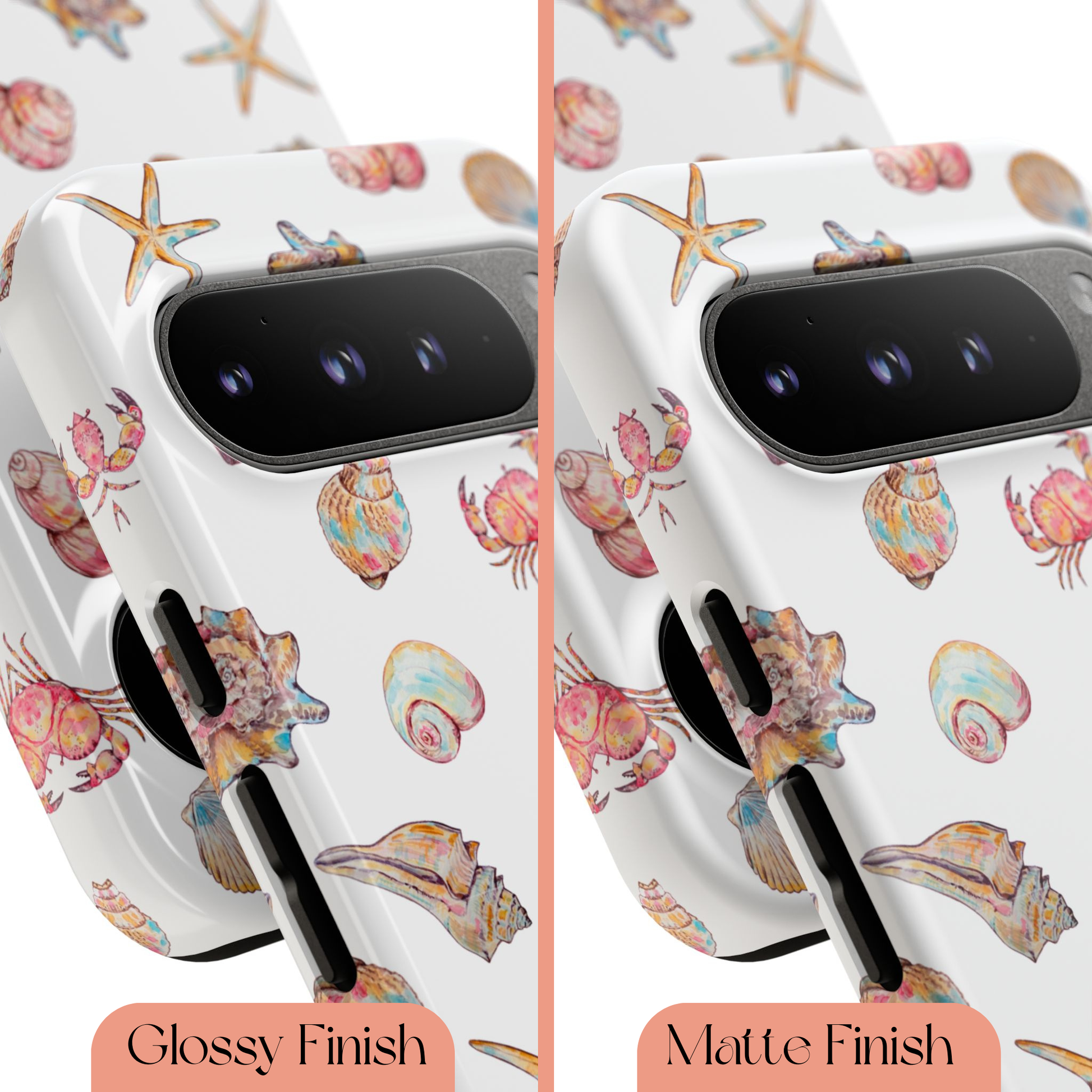 Embrace the vibrant energy of the shore with the "Colorful Coast" case! This design is a lively mix of whimsical starfish, cheerful crabs, and a variety of unique, multi-colored seashells. Each element is a little piece of a sun-drenched beach, celebrating the diverse and colorful life found just below the high-tide line. It’s a fun and quirky case for those who love to explore and find beauty in the little details of life by the sea.