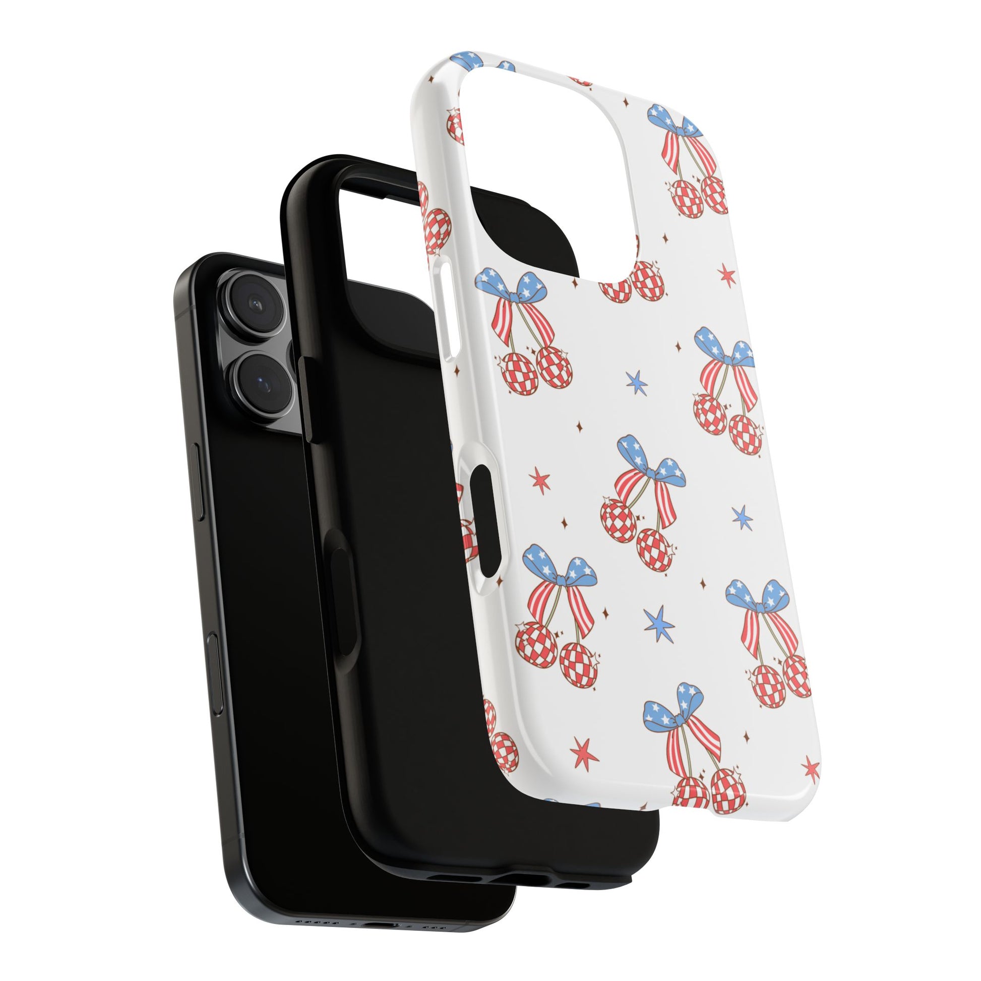 Introducing our stylish and durable phone case, perfect for anyone looking to protect their device while showcasing a playful design. This case features a vibrant cherry pattern with patriotic colors, bringing a cheerful vibe to your everyday life. Ideal for those who love fun, unique items, it's a great fit for students, young professionals, or anyone eager to express their personality. This product makes a thoughtful gift for holidays like Independence Day, birthdays, or just because! Embrace a playful spirit with this charming case while keeping your phone safe from daily wear and tear.