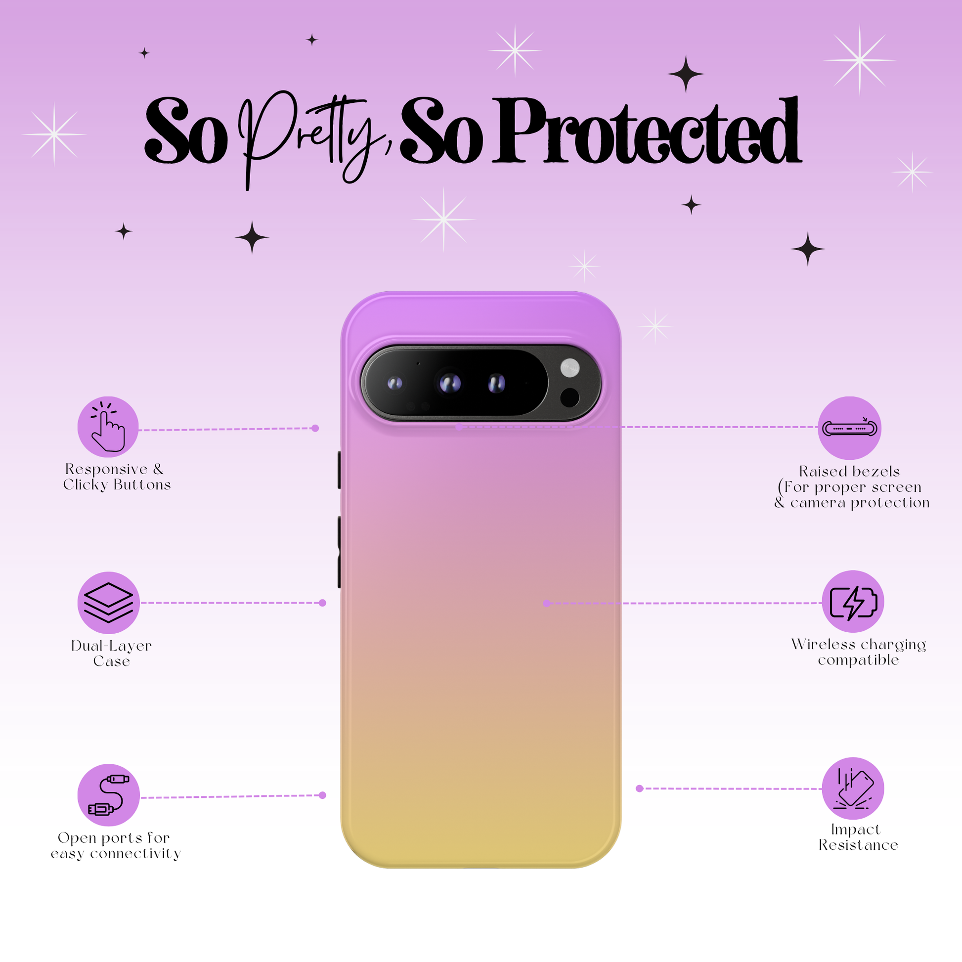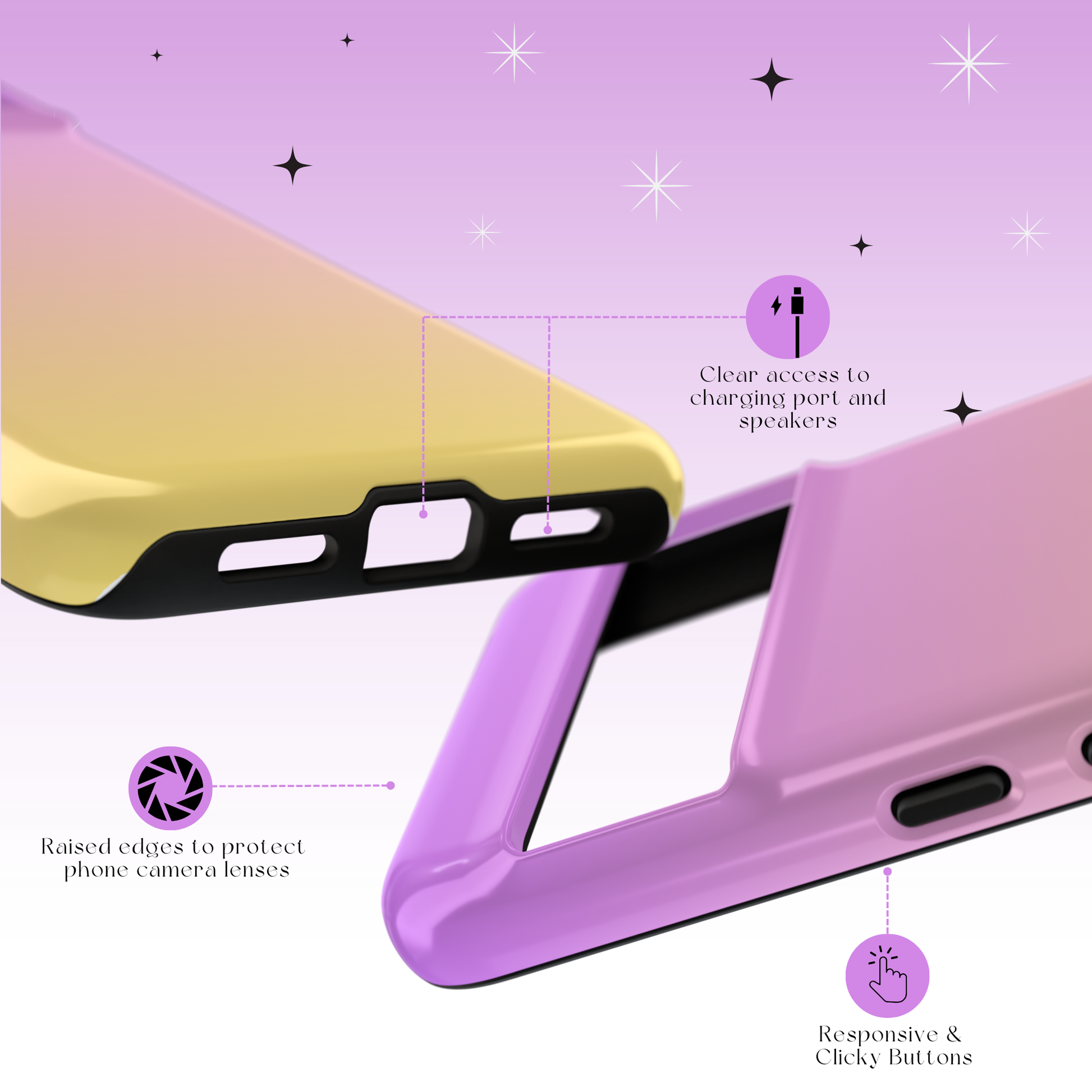 A lively gradient of bright purple fading to a zesty yellow. This energetic and fun case adds a burst of color and robust protection to your device.