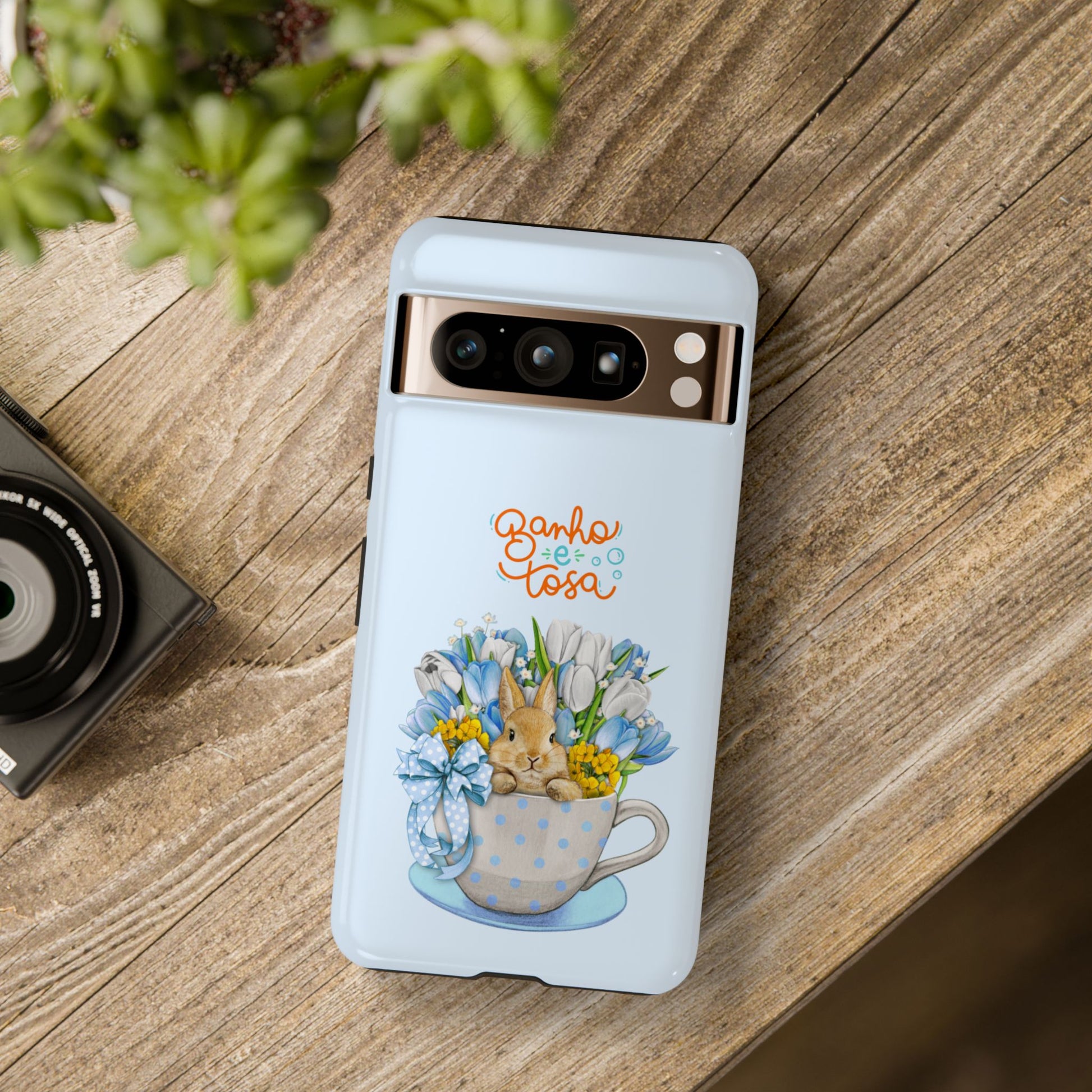A charming, tiny bunny nestled in a bouquet of blue and white, ready to bring a touch of serene, Hoppy sweetness to your daily routine. It's instant calm, right in your hand.
