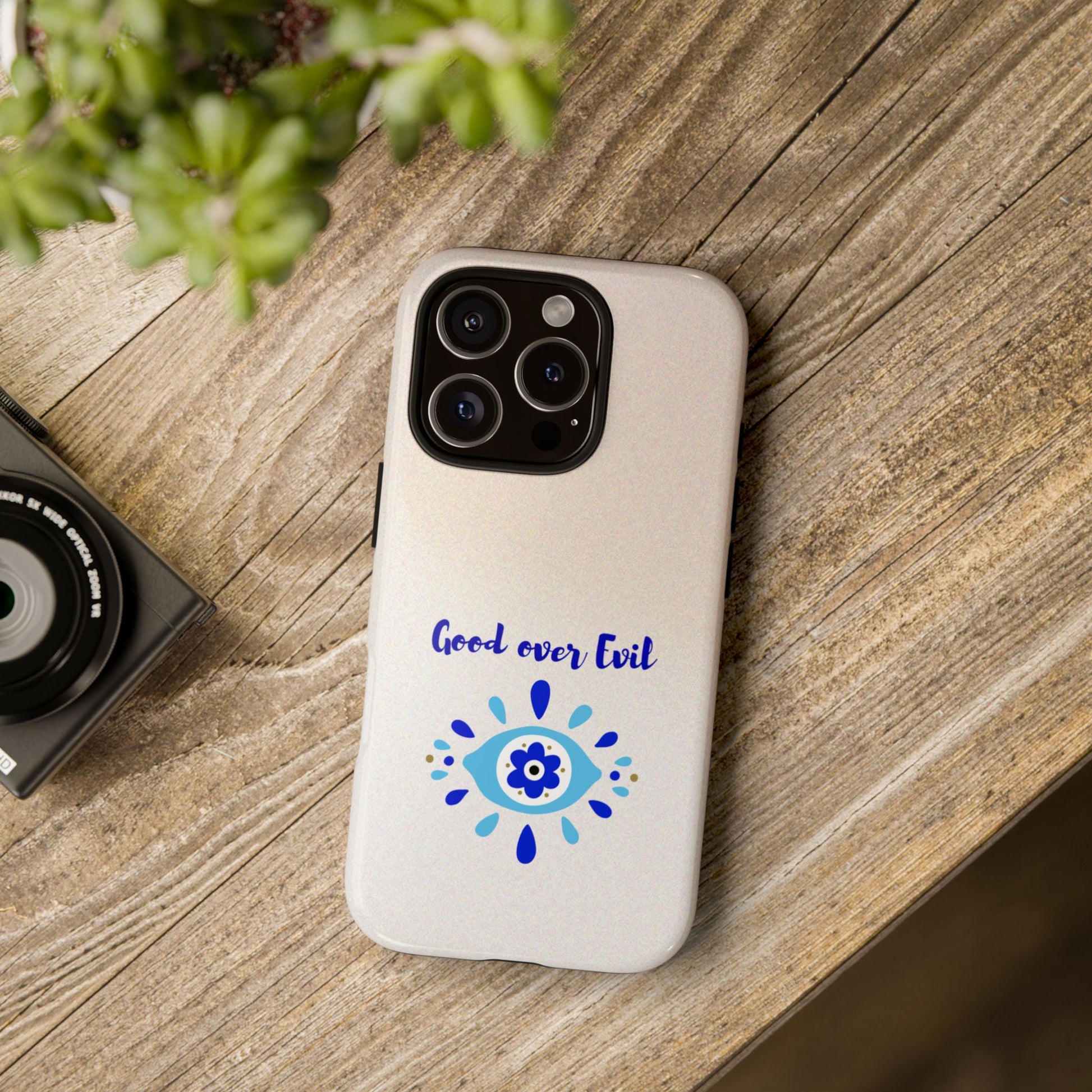 Introducing our durable phone case, a perfect blend of style and protection. This eye-catching design features the uplifting phrase "Good over Evil" complemented by a vibrant eye motif, bringing a positive vibe to your everyday essentials. Ideal for individuals who value both aesthetics and functionality, this phone case makes a thoughtful gift for various occasions such as birthdays, holidays, or just because. Whether you're a busy professional or a student, this case seamlessly fits into your life by offering reliable protection while making a statement. Perfect for those who appreciate meaningful designs and quality craftsmanship, it’s a must-have accessory for your device!