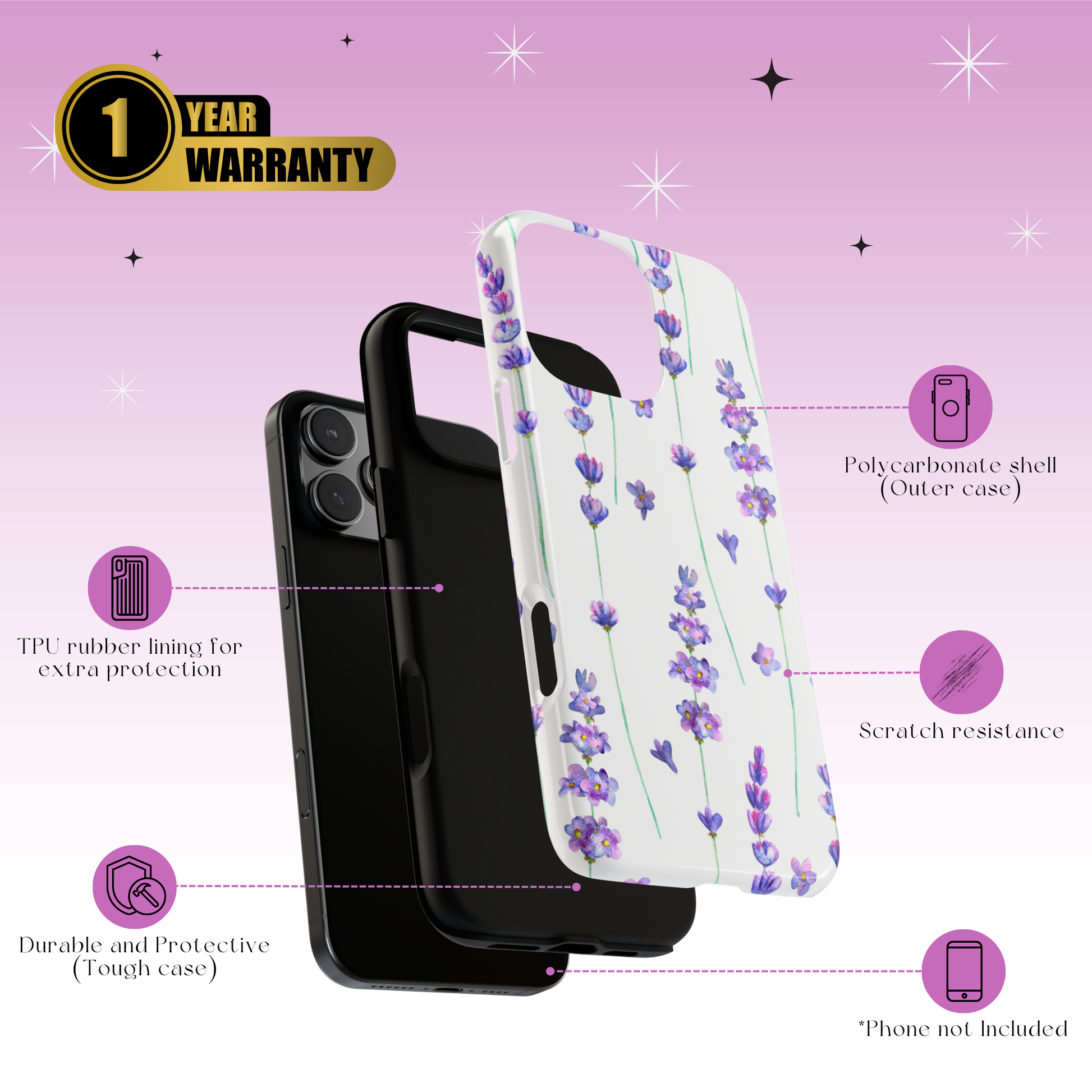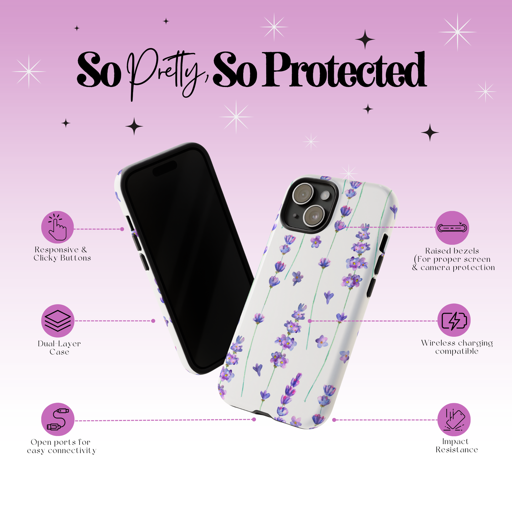 Note: Even though our cases are highly protective and offer 360° protection, we cannot promise that they will protect your phone against all situations. We recommend using a screen protector + our cases for ultimate protection. ♥