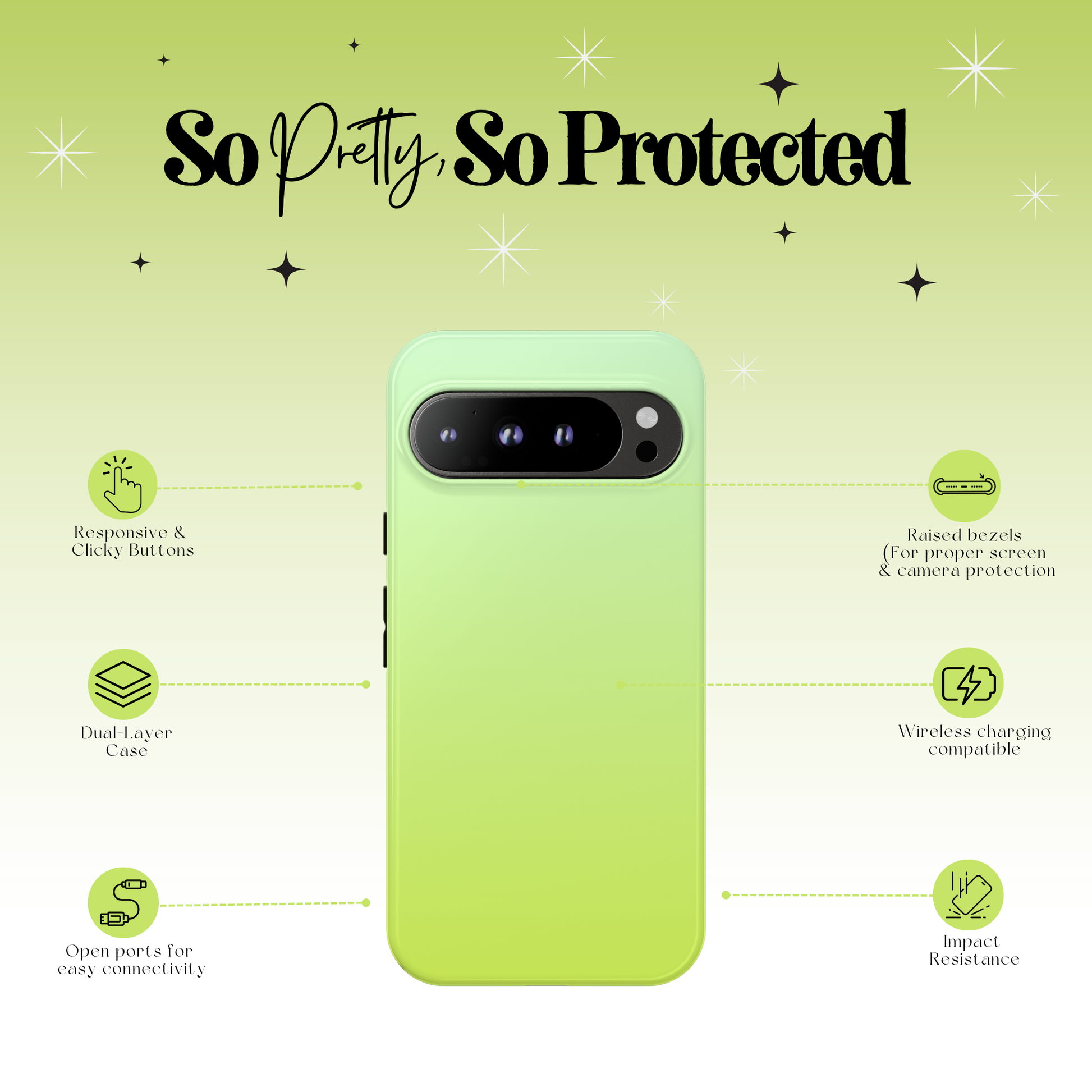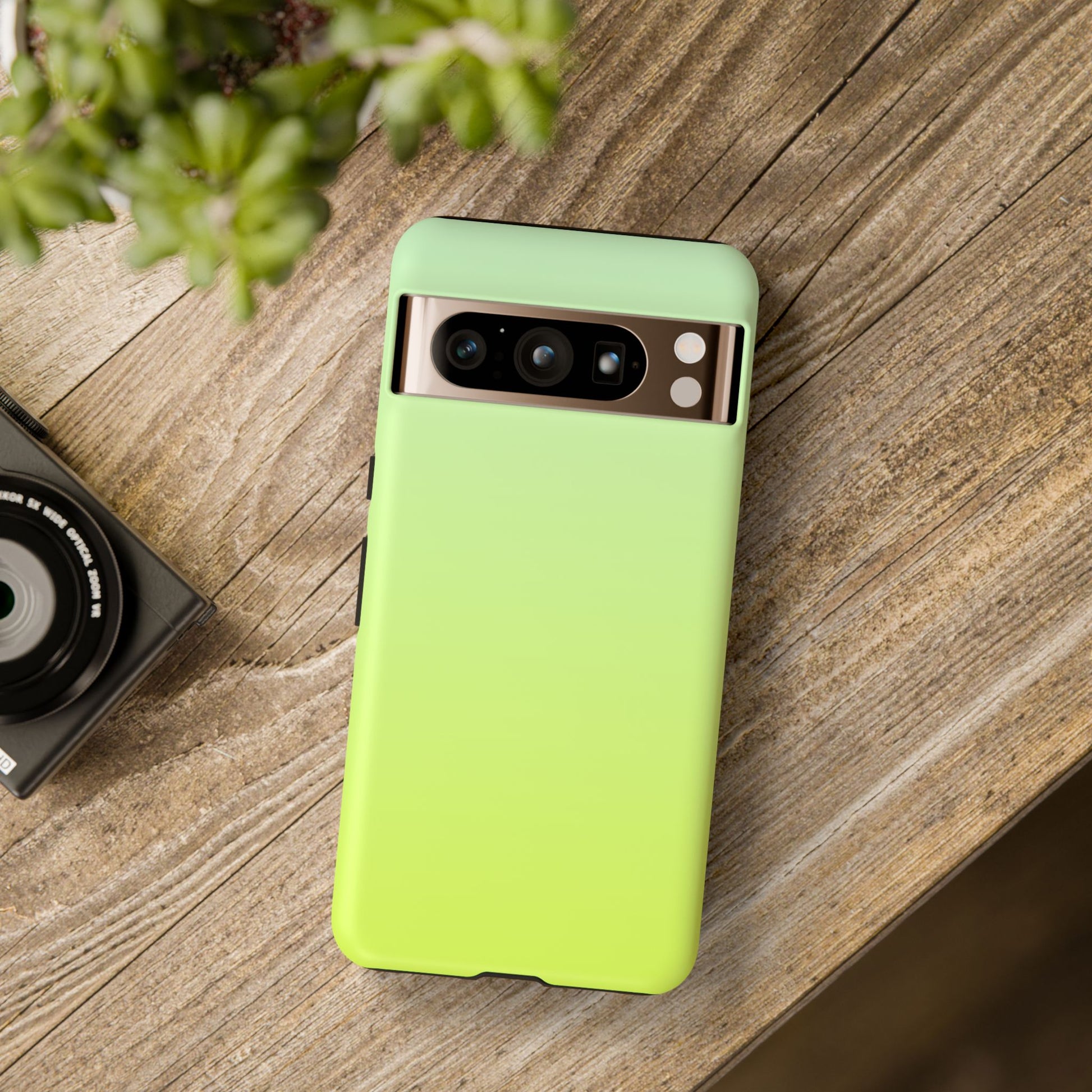 A bright, refreshing gradient from light green to vibrant lemon yellow. This cheerful case brings a fresh, zesty feel and resilient protection to your phone.