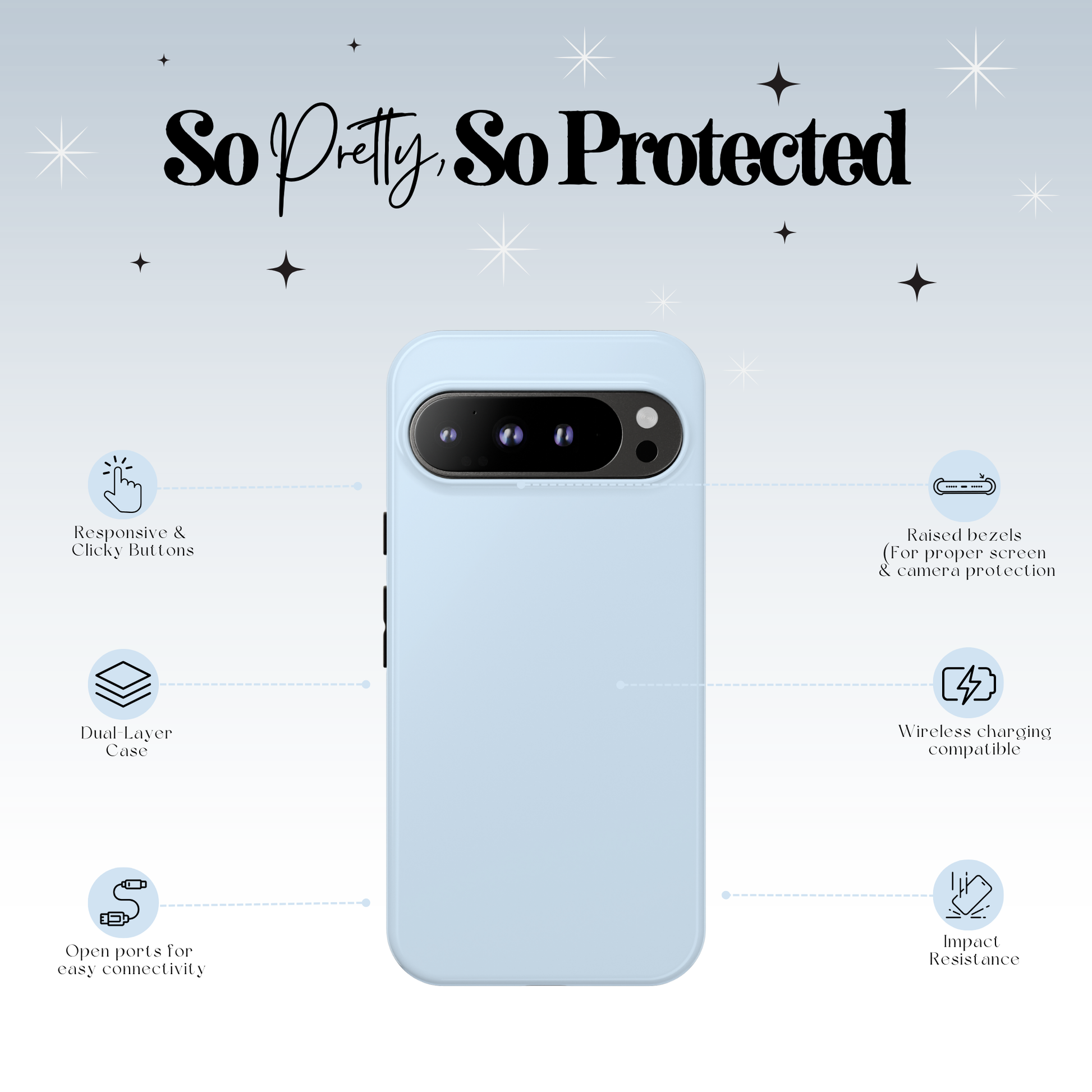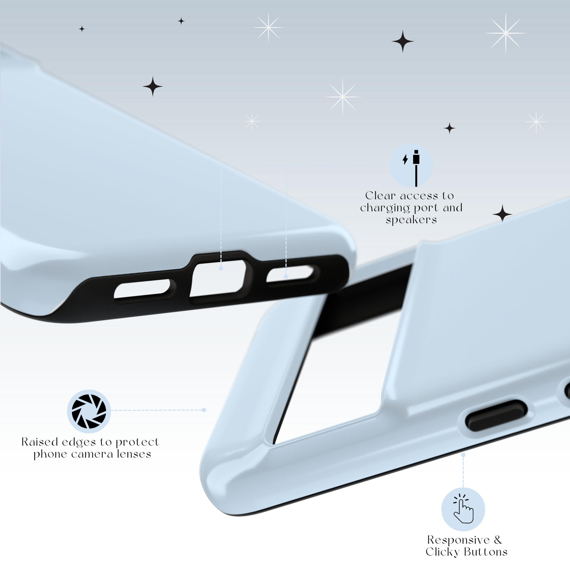 A soft and gentle solid powder blue. This classic color offers a subtle, calming aesthetic and reliable protection for your phone.