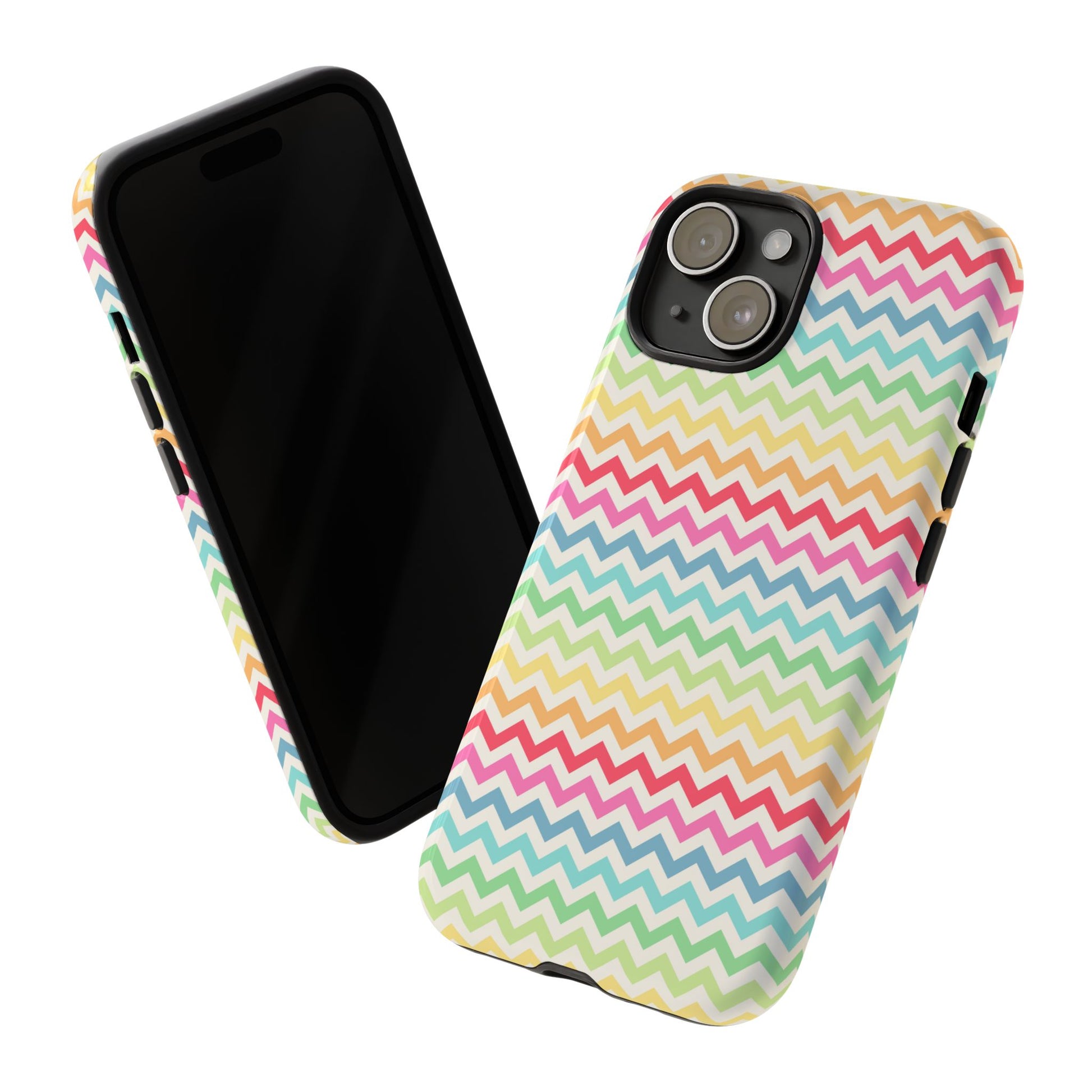 Introducing the ultimate protective phone case designed to combine style with functionality. This durable phone case features a vibrant zigzag pattern that brings a cheerful energy to your device. Its lightweight yet sturdy construction ensures your phone remains safeguarded from accidental drops and scratches, making it perfect for busy lifestyles. Ideal for individuals who want to express their personality through their tech accessories, this phone case is perfect for anyone from teenagers to adults. It makes for a thoughtful gift for birthdays, holidays, or just because. Whether you're out and about or simply lounging at home, this case adds a splash of color and protection to your everyday life.