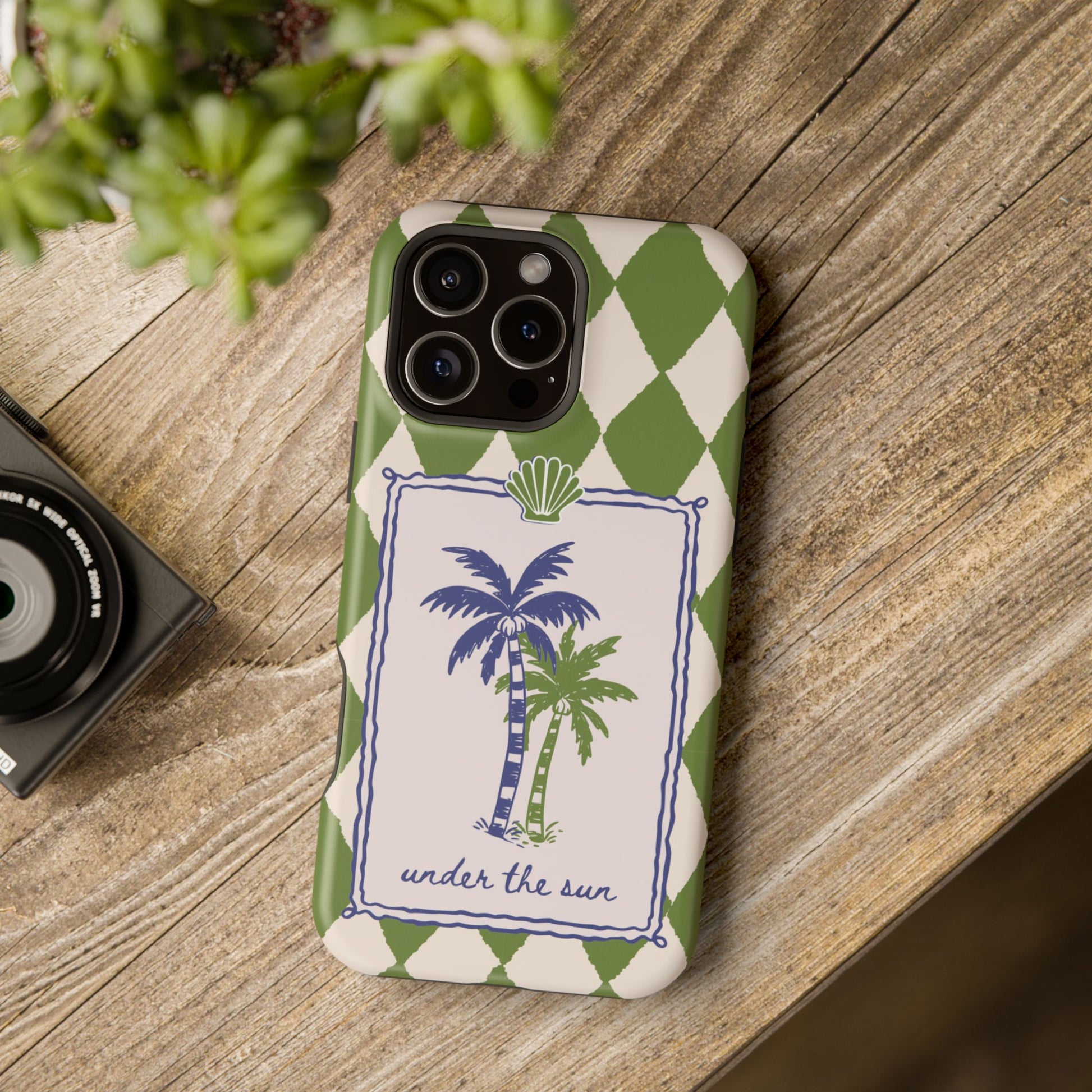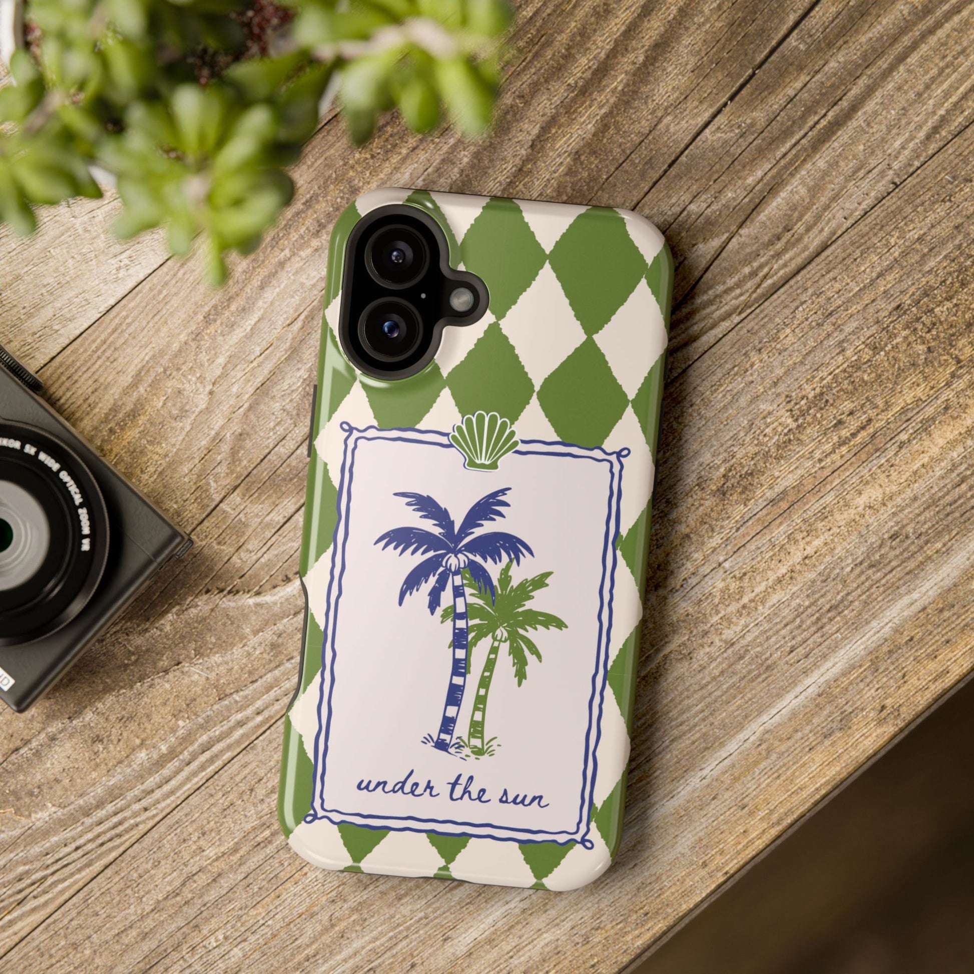 Palm trees swaying, heat on your skin, and carefree afternoons — Under the Sun is a design that feels like vacation in your hand. Cool yet bold, this case captures the laid-back luxury of summer days that never seem to end.